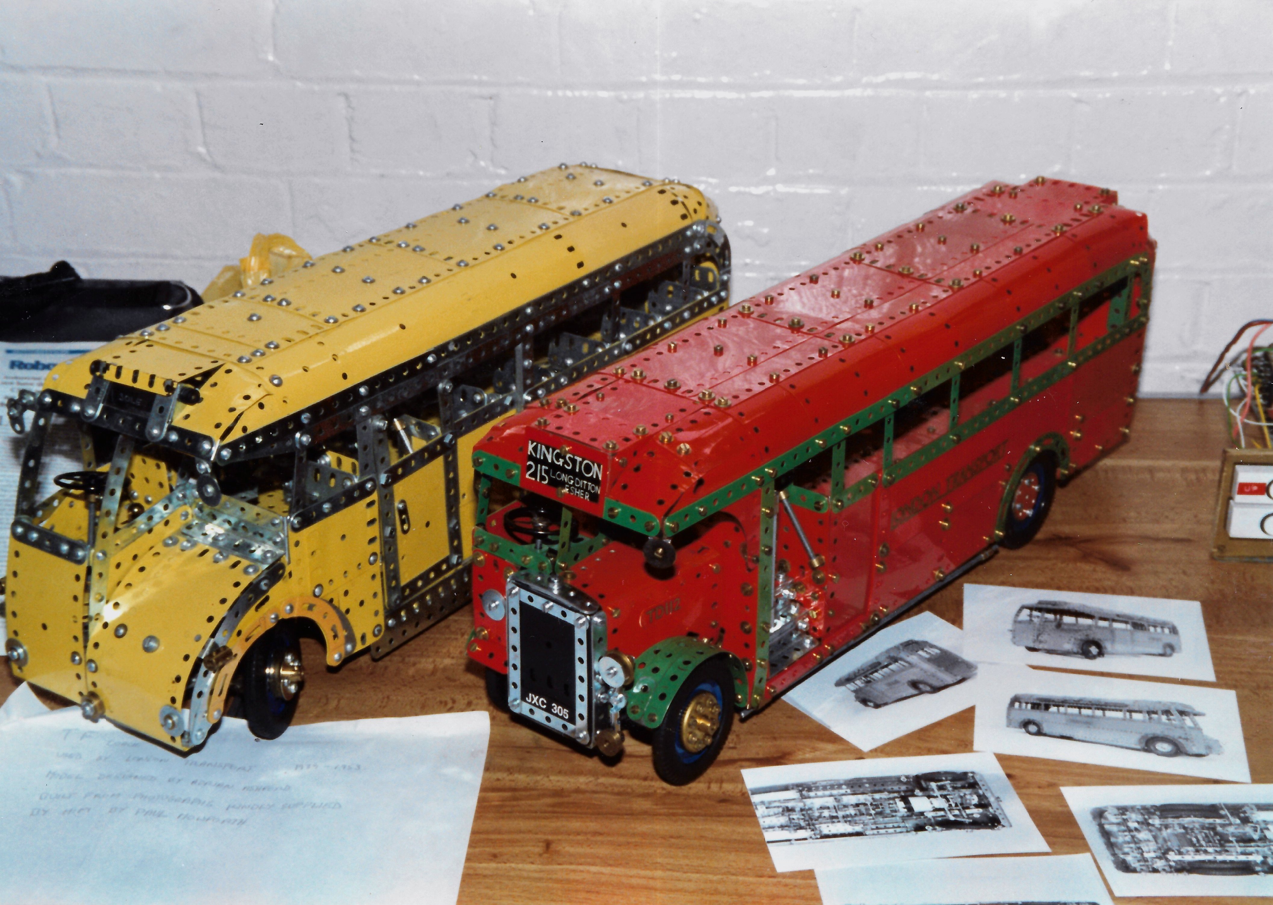 These two buses were at our 20th anniversary meeting on 13th July 1996. On the left is a TF coach by Paul Mowforth, based on a model by Adrian Ashford. On the right is Adrian’s own model of a TD type London Transport bus.