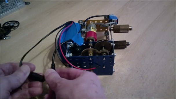 A reversing gearbox in red/green parts, used to automatically drive an elevated railway end-to-end. Designed by Roger Marriot.
