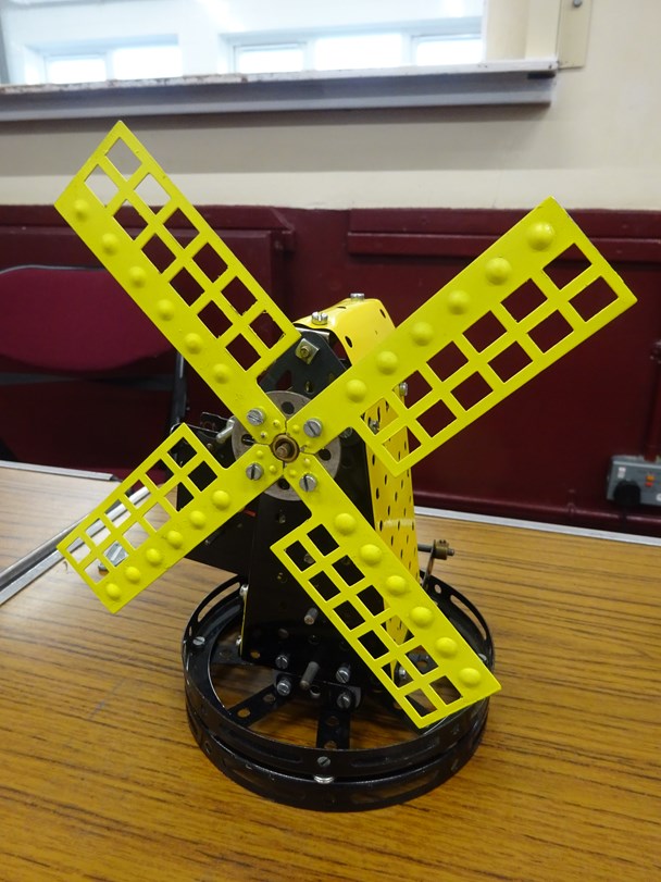 Powered by a Magic clockwork motor, the sails turn and the model rotates.