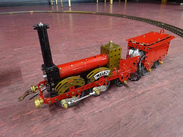 A gauge 1 Meccano version of a Lion 0–4–2 locomotive, as featured in the 1953 Ealing comedy The Titfield Thunderbolt.