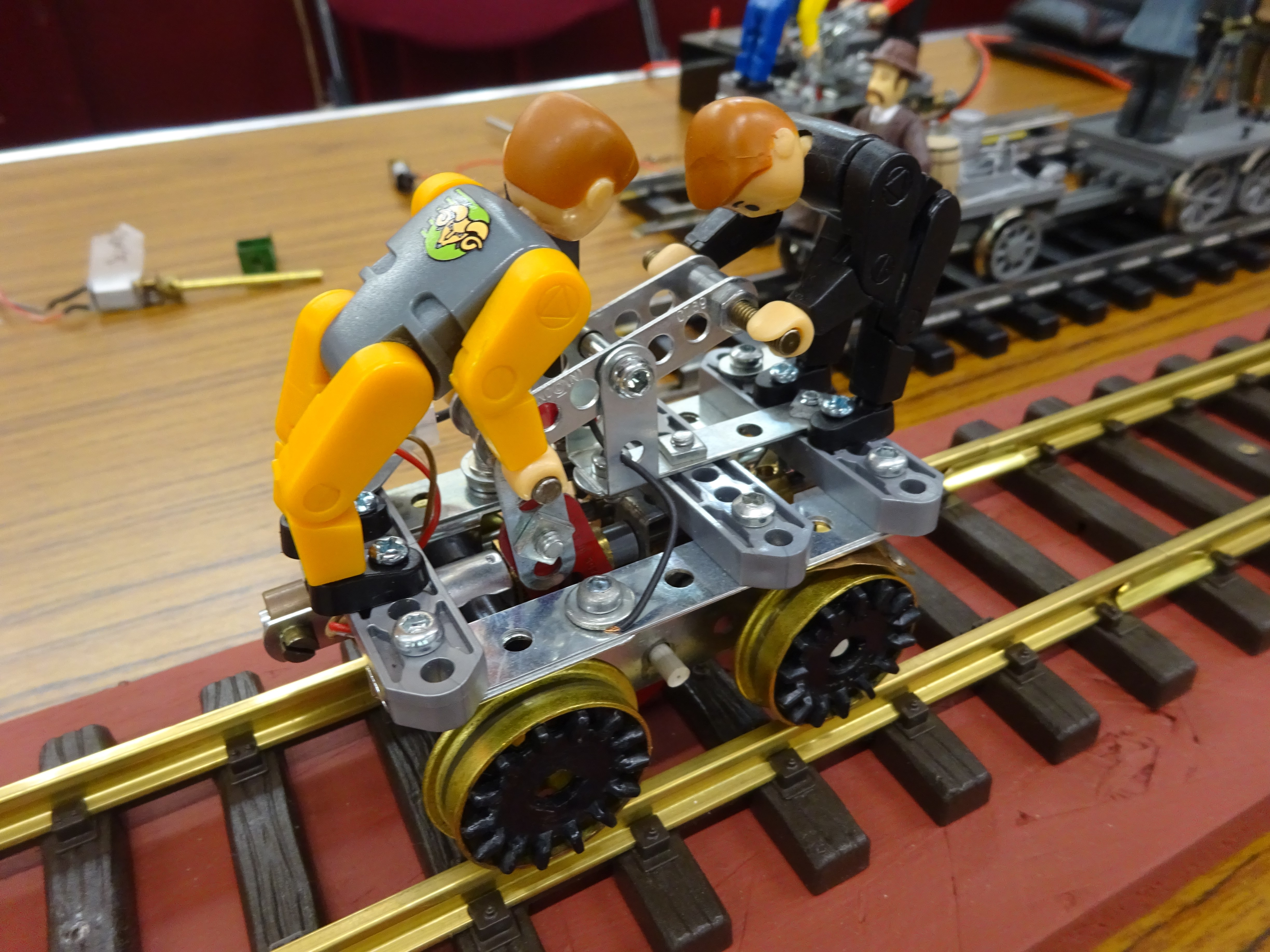A Meccano version of the Bachmann G gauge Gandy Dancers Hand Car model.